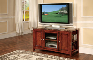 Wooden TV Stand With Faux Marble Top Cherry Brown