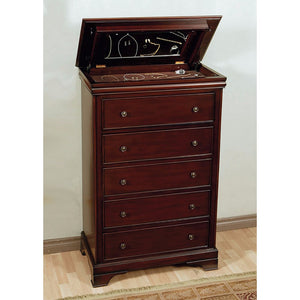 Transitional Style 5 Drawer Chest with Lift Top, Brown