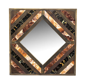 Wooden Square Shaped Wall Mirror With Inlay, Multicolor