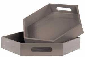 Wooden Hexagonal Tray with Cutout Handles- Set of 2- Gray- Benzara